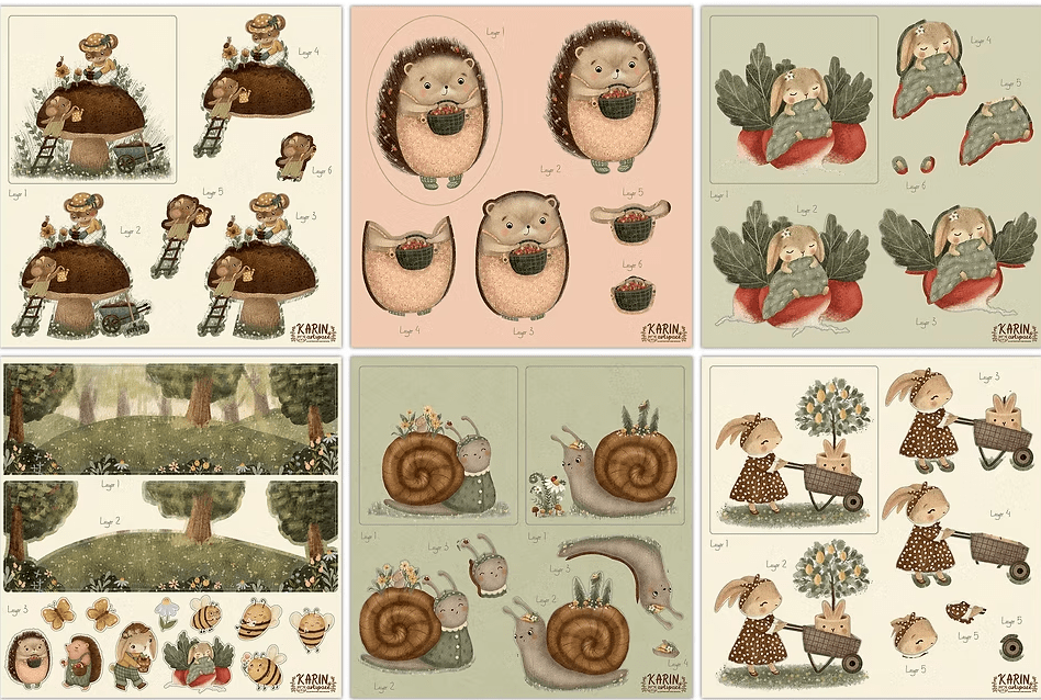 Amongst the Hedgerow, is a whimsical collection of adorable animals in their fictional habitats of woodland scenes and delicate florals, going about their day in a playful way, that will bring joy and warmth to both those who craft with it and receive.