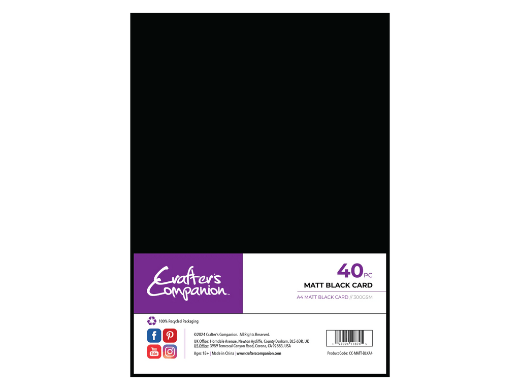 Add a bold, professional finish to your makes with Crafter’s Companion Matt Black Card A4 (40 sheets). With a sturdy 300gsm weight and a smooth matt surface, this high-quality cardstock is ideal for everything from card bases and matting & layering to scrapbook pages, die-cut shapes and mixed media projects.