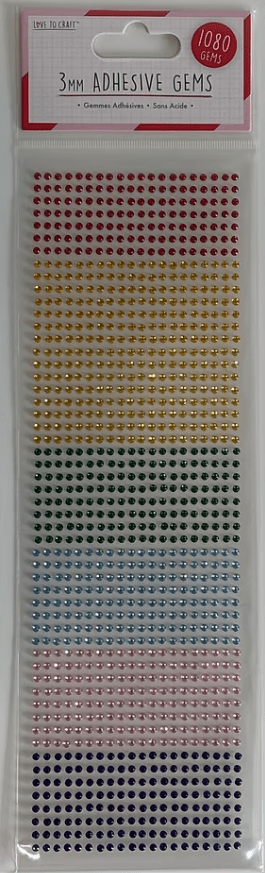 Love To Craft™ - Rainbow - 3mm Adhesive Gems - Pack Of 1080pc