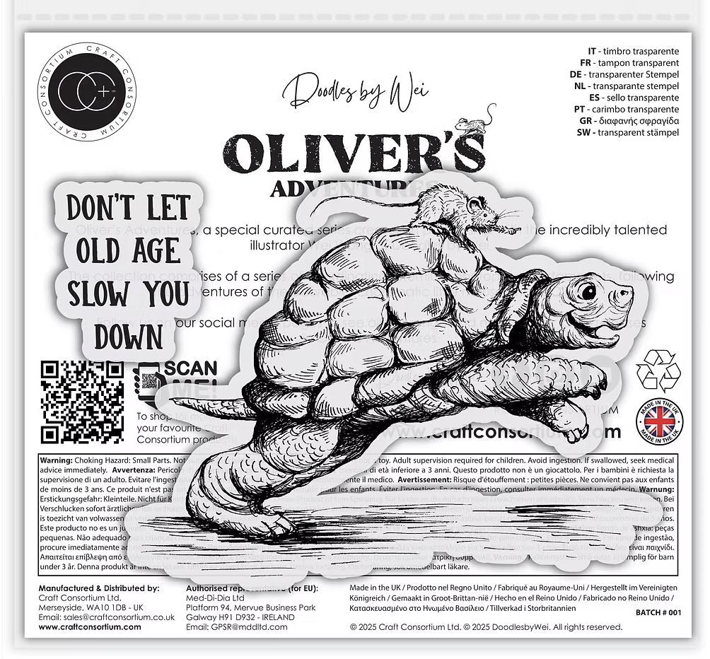 Celebrate every stage of life with the Oliver's Adventures – Old Age Clear Photopolymer Stamp Set, exclusively from Doodles by Wei and Craft Consortium. Featuring heartwarming pen & ink artwork by Wei, this set brings the whimsical charm of Oliver the mouse to your creative projects.