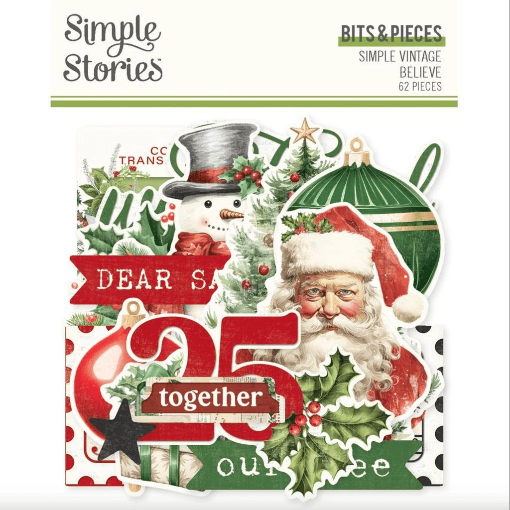 Enhance your holiday projects with the Simple Vintage Believe set, featuring 62 die-cut cardstock pieces designed for Christmas crafting.
